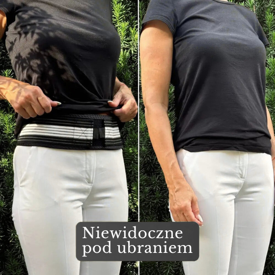 Stabilizuje dolną część pleców i odciąża kręgosłup, przynosząc wyraźną ulgę już po pierwszym założeniu.